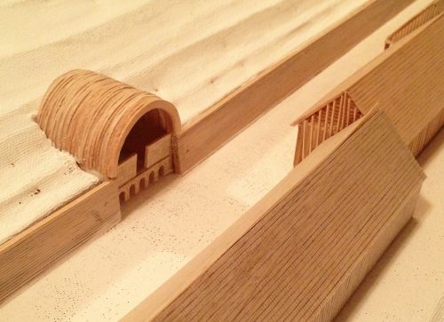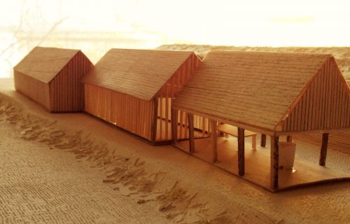 A doua componenta a ansamblului este formata din 3 structuri de lemn dedicate etapelor de malaxare si fasonare, uscare, respectiv depozitare. Acestea exprima, prin necesitatile diferite de ventilare, ideea densificarii in parcursul de la materie prima catre produsul finit. Unitatea lor este data de proportiile si formele geometrice preluate din arhitectura locala, dupa modelul surilor sasesti si dispunerea acestora pe teren.
