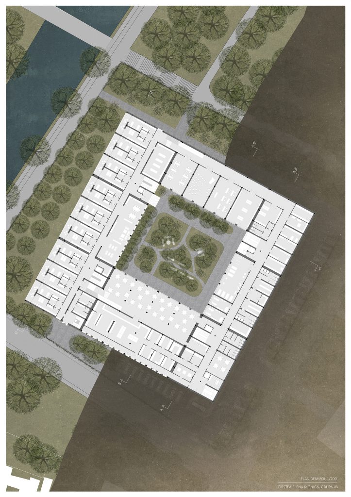 În cadrul temei de an 4, mixitate spațial-funcțională, proiectul de atelier a constat în crearea unui spațiu destinat persoanelor în vârstă în imediata vecinătate a Mănăstirii Plumbuita din București. Adresându-se nevoilor specifice ale bătrânilor, proiectul integrează, pe lângă spațiile destinate locuirii propriu-zise, diverse funcțiuni cu caracter social-cultural, pentru îngrijirea sănătății și spații care să faciliteze interacțiunea între generații.