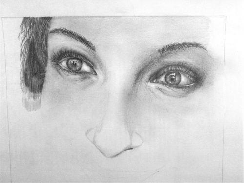 1) First of all, the eyes are essential in every portrait, that’s why I recommend starting the portrait drawing them. I would say that they are even the most important feature on human face. So, you should pay more attention on drawing shadows and light reflexion in this part of the portait.